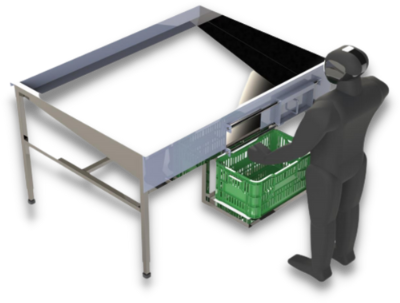 The bin turner performs a double function where it has a piston to obtain a push of the bin and place it directly to the turning area avoiding the manual effort and thus providing a higher production to the process; In the turning part it includes hydraulic actuators and an area for the empty bin.